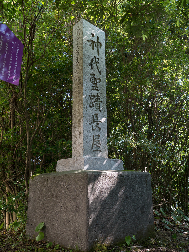 その神話の遺名の地として、昭和15年(紀元2600)年に神代聖蹟地(鹿児島県内11ヶ所のうち南さつま市は6ヶ所)に県から指定を受け、この長屋山山頂に神代聖蹟長屋碑が建てられました。