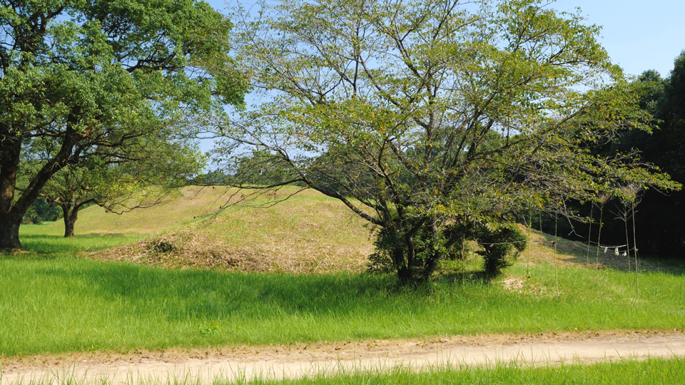 木花開耶姫命の父神の大山祇命の御陵と伝えられ、西都原古墳では数少ない名の付いた古墳です。11月29日の石貫神社の例大祭では、神社と共に墳墓の前で神事が行われています。