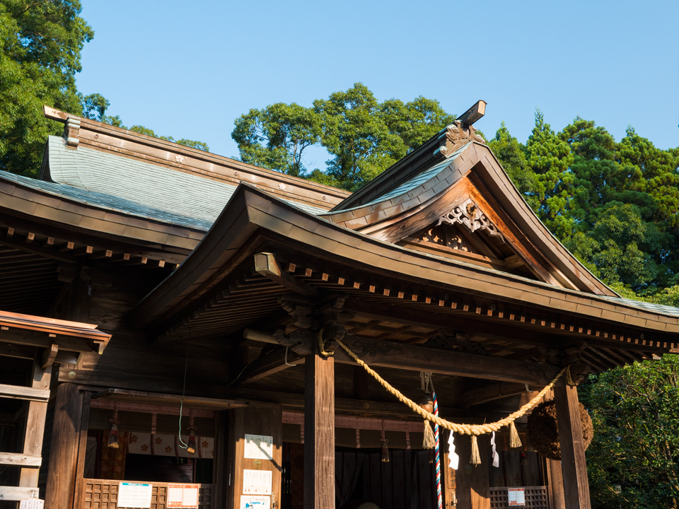 御祭神の木花開耶姫命は天孫の瓊瓊杵命に縫初川で見初められ、事勝国勝長狭神(ことかつくにかつながさのかみ)の仲人により日本最初の結婚式を挙げたとされています。7月7日に行われる七夕祭りでは、その古事を由来とする特殊神事の更衣祭が執り行われ、婚礼衣装を木花開耶姫命の神像にお着せし、白粉や口紅でお化粧、角隠しの御被衣(おかつき)を飾り付け、花嫁姿になられる有様を行っています。